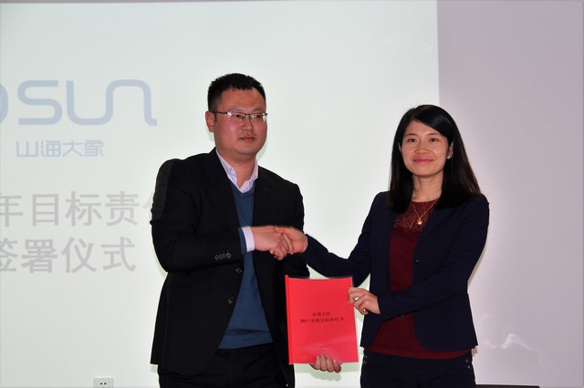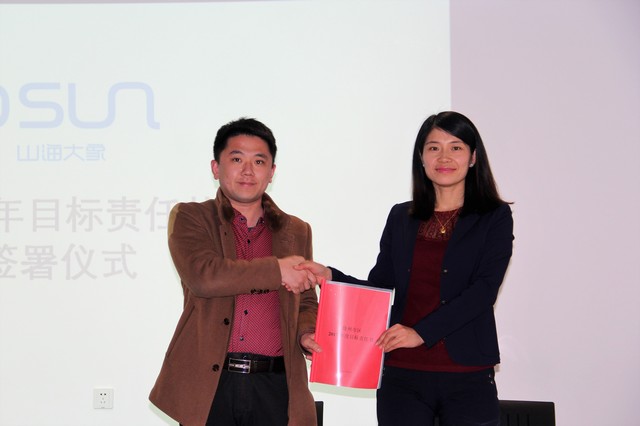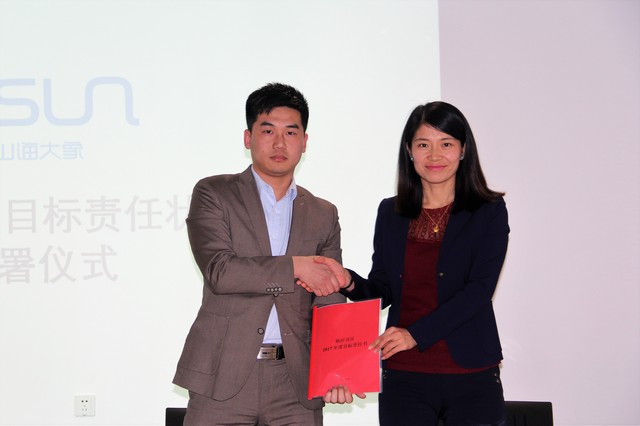 董事长相丰与法律合规部、工程管理部、市场部、发展研究院、采购部、成本控制部、行政人事部、财务运营部等各个职能部门以及泉海置业、营销公司、资产管理公司等子公司等负责人签署2017年目标责任状。